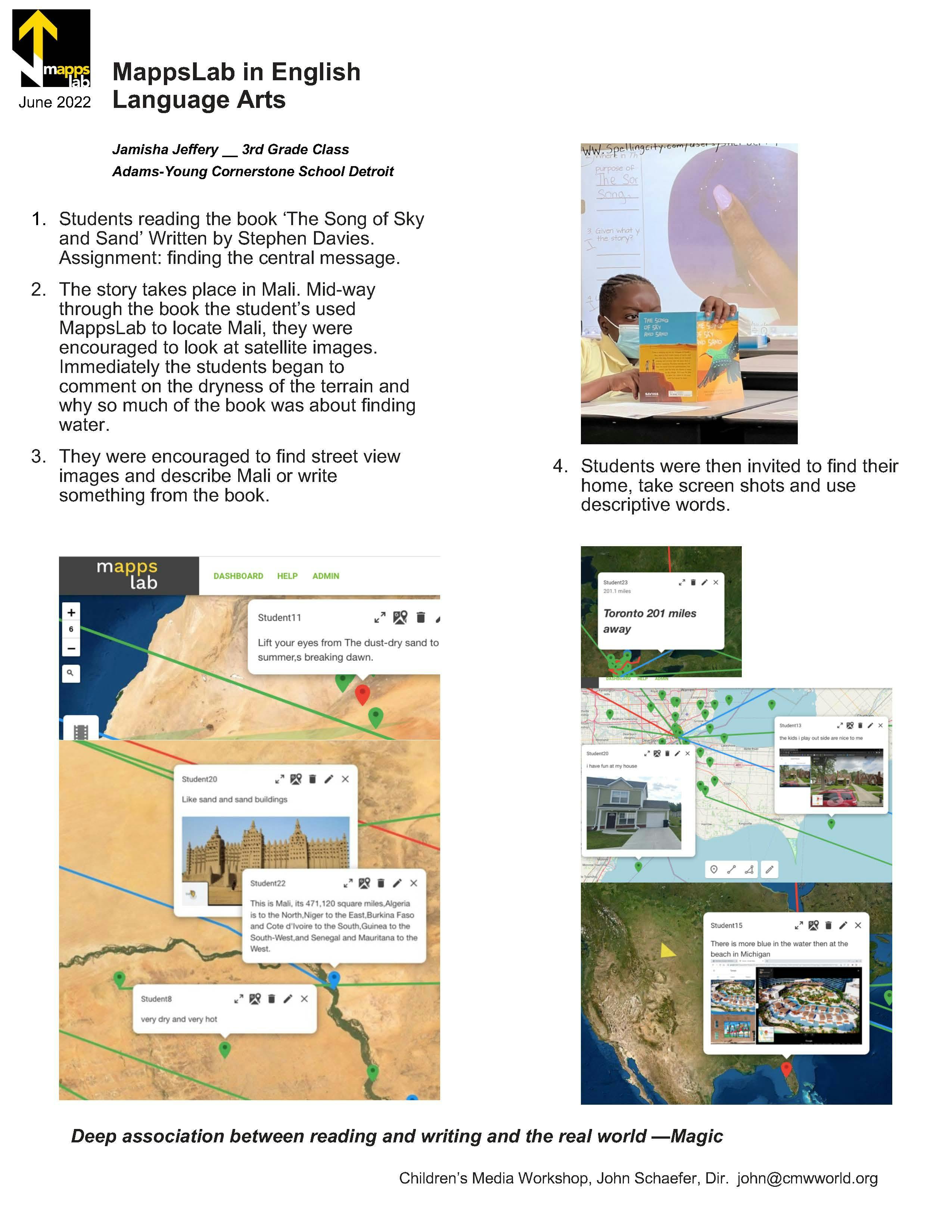 2022-Demonstration where MappsLab was used to adjunct current CORE subjects- day of.